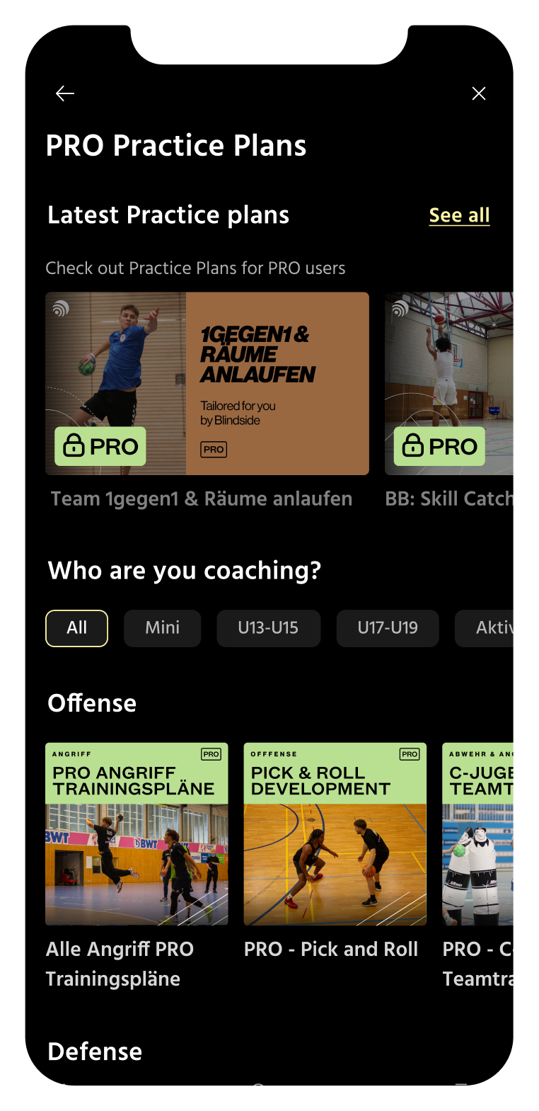 Blindside is built for ambitious coaches in handball and basketball. (Note: Dedicated player features are coming soon.)